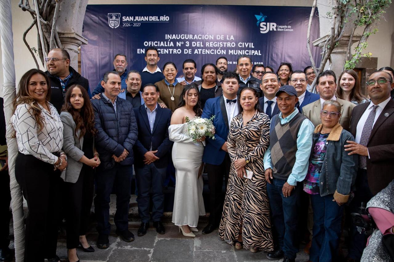 La Presidenta Municipal de Pinal de Amoles, Lupita Ramírez Plaza, en compañía del Secretario de Gobierno del Estado de Querétaro, Erick Gudiño, y del Presidente de la asociación Migrantes Unidos…