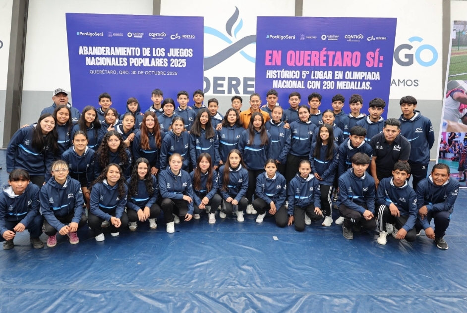 La directora general del Instituto del Deporte y la Recreación del Estado de Querétaro (INDEREQ), Iridia Salazar Blanco, junto al director de Calidad para el Deporte, Manuel Copello, abanderaron a las y los 116 integrantes de la delegación representante del estado en los Juegos Nacionales Populares 2025, a realizarse del 2 al 11 de noviembre en Oaxtepec, Morelos.