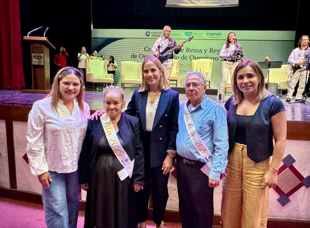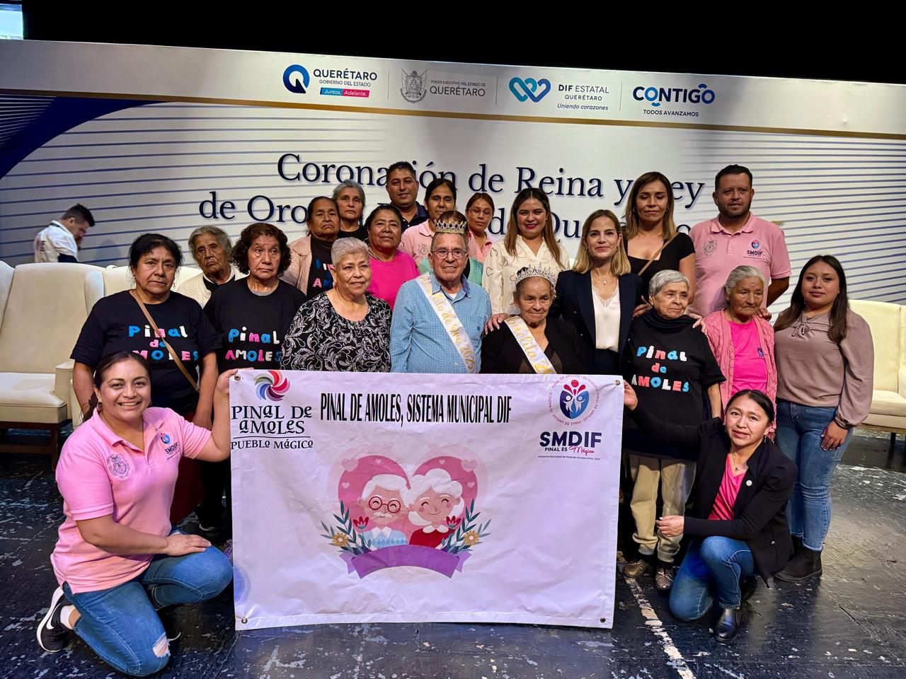 Agnelo Rivera García y María Piedad Martínez Ibarra, Rey y Reina de los Abuelos de Pinal de Amoles, participaron en la coronación de la Reina y el Rey de Oro en la ciudad de Querétaro, evento encabezado por Car Herrera de Kuri. En representación del presidente del SMDIF. Iván Zárate asistió la regidora Liz Plaza.