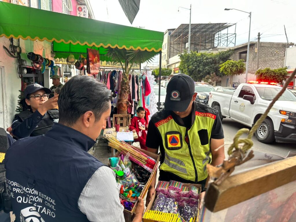 Con la finalidad de evitar riesgos a las familias queretanas, la Coordinación Estatal de Protección Civil de Querétaro (CEPCQ), participó en la realización de un operativo interinstitucional para inhibir la comercialización y uso de artículos pirotécnicos, en distintos comercios, mercados, tianguis y principales vialidades de la capital queretana.