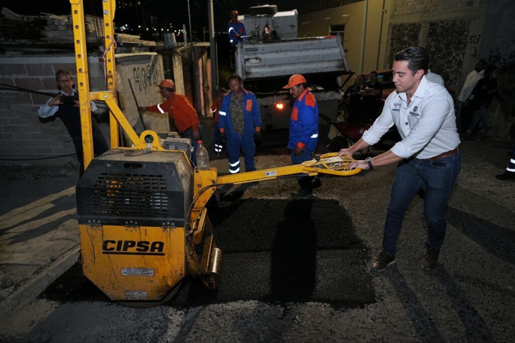 El Presidente Municipal de Querétaro, Felifer Macías Olvera acudió al arranque de la jornada de bacheo nocturno en la colonia Bolaños, al lado del personal de Servicios Públicos Municipales y se comprometió a redoblar esfuerzos para mantener en buenas condiciones las calles y avenidas de la ciudad.