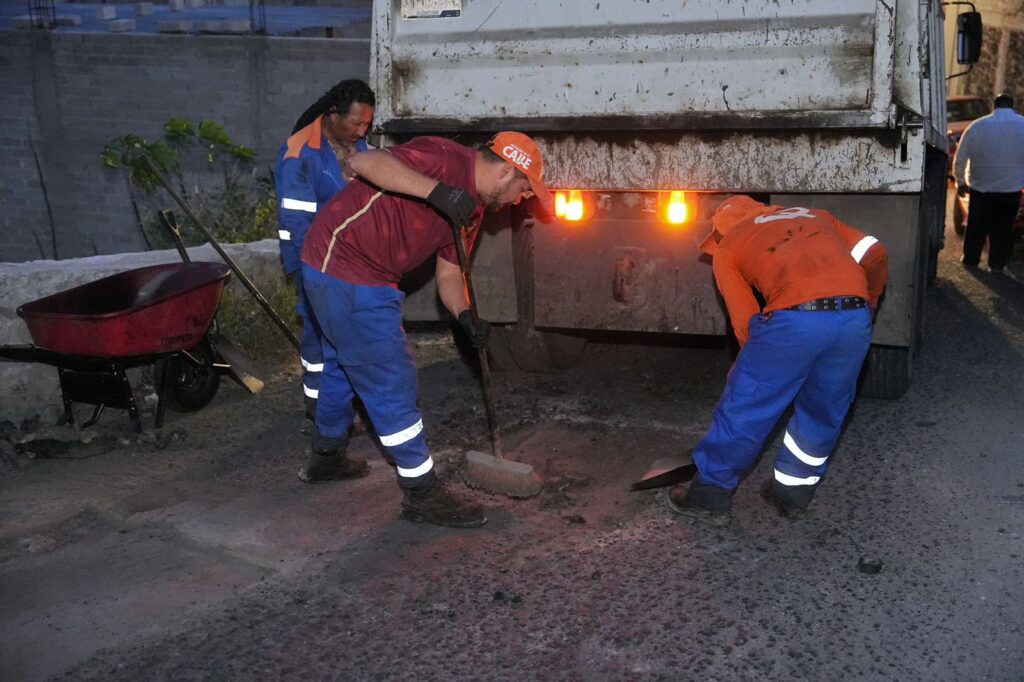 Explicó que este tipo de bacheo se realiza en frío, cualidad que permite agilizar el servicio y evitar molestias a vecinos y conductores que transitan por la zona.