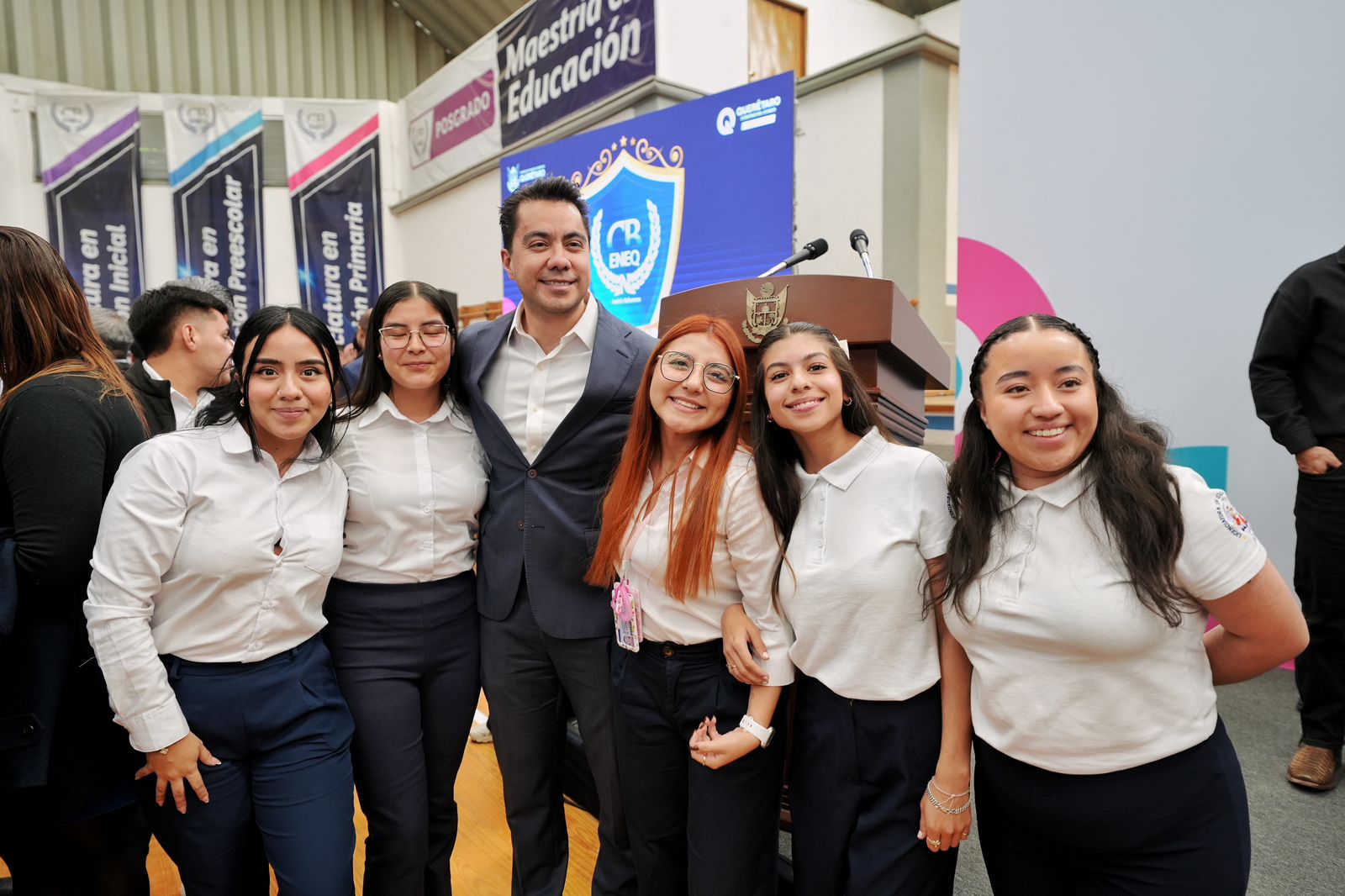 El presidente municipal de Querétaro, Felifer Macías, acompañó al gobernador del estado, Mauricio Kuri González, a la conmemoración del 140 aniversario de la Centenaria y Benemérita Escuela Normal del Estado de Querétaro “Andrés Balvanera”.