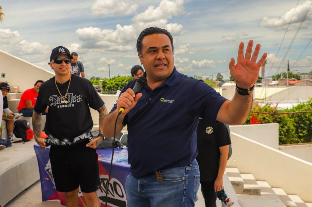 El Presidente Municipal de Querétaro, Luis Nava, se unió al encuentro entre las y los jóvenes con el rapero Toser One en el Centro Cultural Felipe Carrillo Puerto, como parte del programa «Talento por el Barrio» que brinda formación en música hip-hop y freestyle y con el que se busca impulsar a la juventud con mejores oportunidades que los alejen de conductas de riesgo.