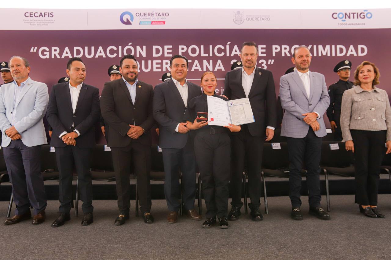 En ceremonia encabezada por el Gobernador, Mauricio Kuri González, el Presidente Municipal, Luis Nava, asistió a la ceremonia de graduación de 46 nuevos policías de proximidad de varios municipios del estado y de la propia Policía Estatal. que se especializaron en el Centro de Capacitación, Formación e Investigación para la Seguridad del Estado de Querétaro (CECAFIS).