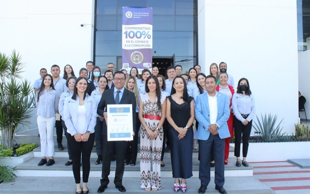 El reconocimiento fue entregado al director del Centro de Conciliación Laboral, Marco Antonio Sánchez Mandujano, por el secretario de la Secretaría Ejecutiva del Sistema Estatal Anticorrupción, Jorge Sánchez Martínez; en presencia de la presidenta de la Asociación de Abogados Laboralistas del Estado de Querétaro, Ana María Becerra Sánchez, como testigo de honor.