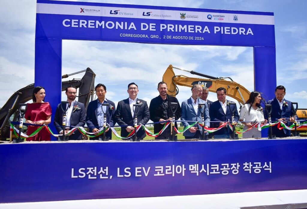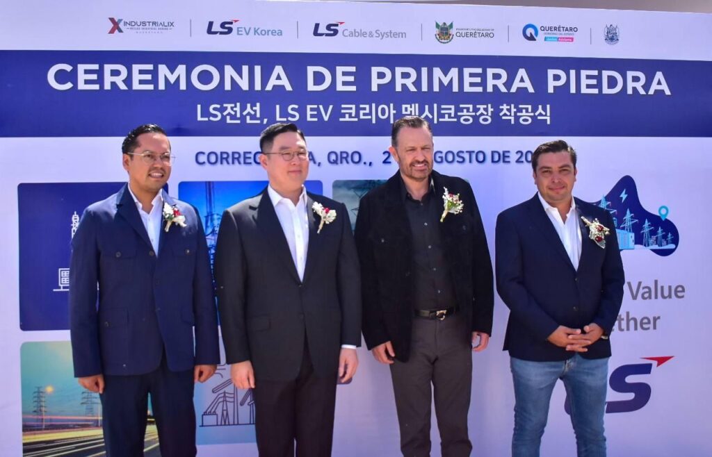 En compañía del gobernador, Mauricio Kuri González, el presidente municipal de Corregidora, Adolfo Colín Sánchez, acudió a la colocación de la primera piedra de la empresa LS Cable & System México y LS EV México, en las instalaciones de zona industrial Industrialix.