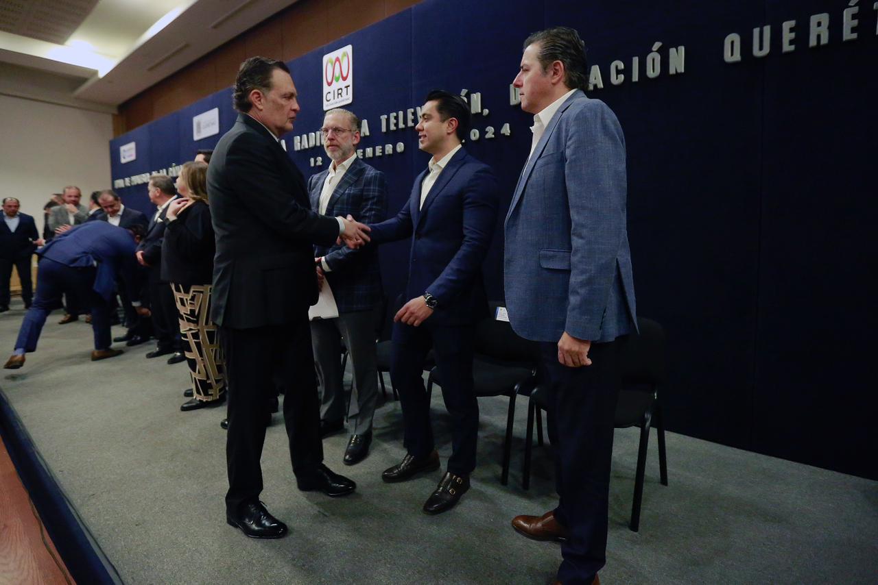 El diputado federal, Felifer Macías, acompañó al gobernador, Mauricio Kuri y al presidente del Consejo Directivo de la CIRT, José Antonio García, a la toma de protesta de los integrantes de la nueva delegación directiva Cámara de la Industria de la Radio y la Televisión, Delegación Querétaro, encabezada por Romeo de Jesús Ramos.