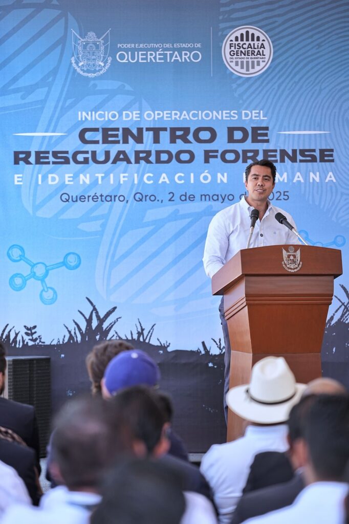 Textual: “Con el esfuerzo que hoy se hace aquí en Querétaro, hoy una vez más nos diferenciamos. Y con este Centro de Resguardo Forense avanzamos para la plena identificación de personas no identificadas, el resguardo digno de las personas fallecidas no identificadas y también, como ha dicho el señor fiscal, en garantizar el acceso a la justicia de las víctimas y de sus familiares, que es el mayor anhelo que se tiene en este país”.