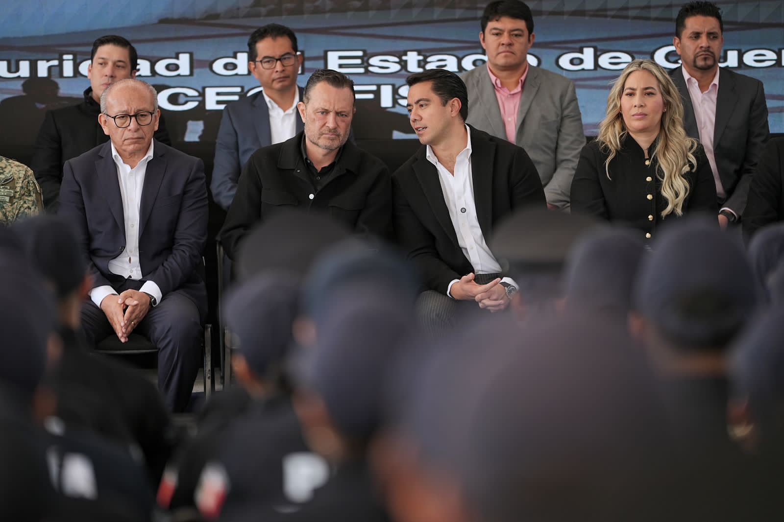 El Presidente Municipal de Querétaro, Felifer Macías, acompañó al Gobernador del Estado, Mauricio Kuri González a la ceremonia de graduación de 123 nuevos elementos de la Policía de Proximidad Querétaro 2024 realizada en la Plaza Cívica del Centro de Capacitación, Formación e Investigación para la Seguridad del Estado de Querétaro (CECAFIS) para entregar los certificados de formación inicial y las monedas de graduación a los oficiales