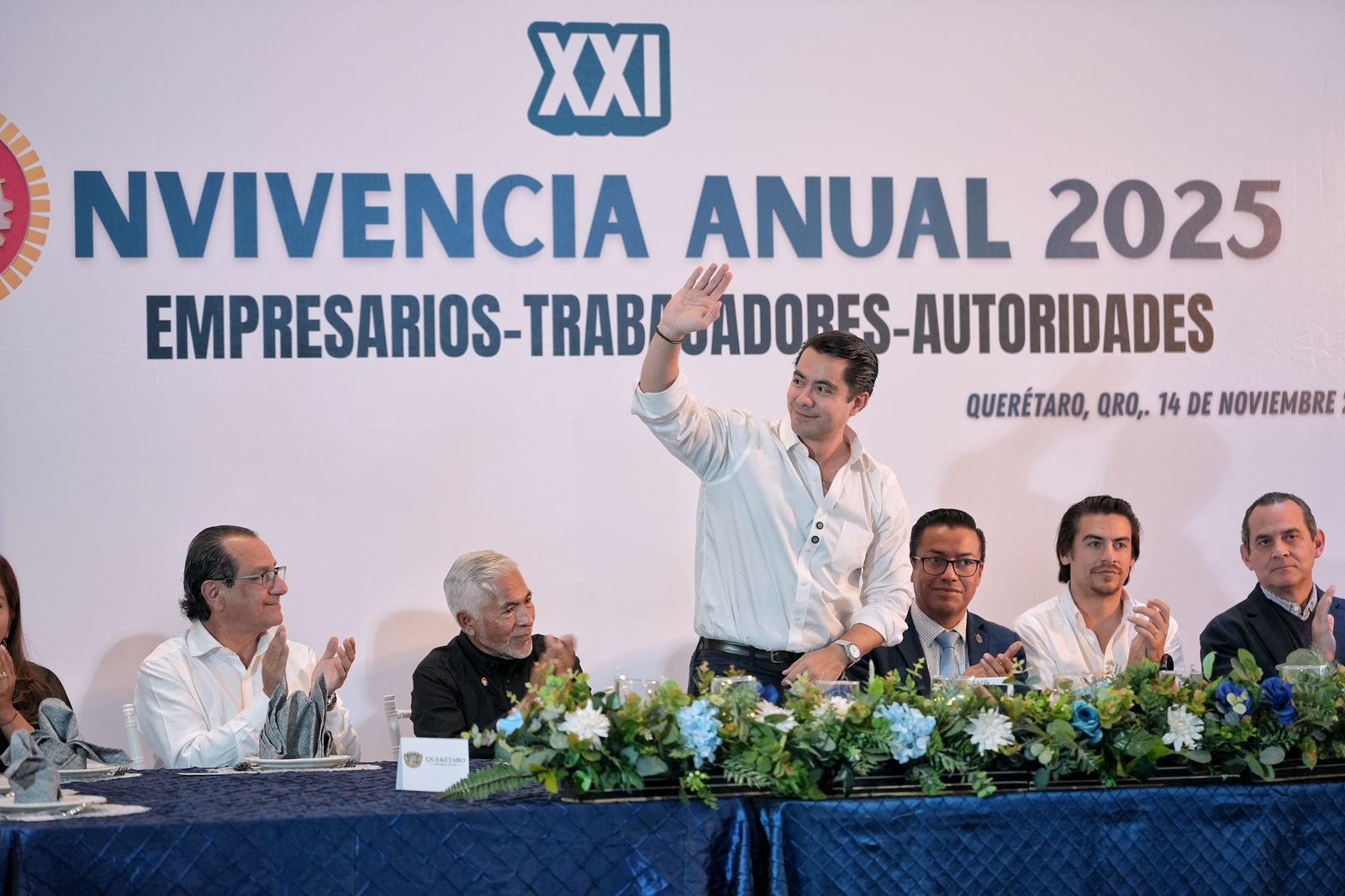 Lo anterior lo dio a conocer al acudir a la XXI Convivencia Anual de la CTM 2025 “Empresarios-Trabajadores-Autoridades”, donde indicó que este sector representa la fortaleza de Querétaro, pues gracias a su trabajo y esfuerzo se generan oportunidades para que las familias vivan mejor.