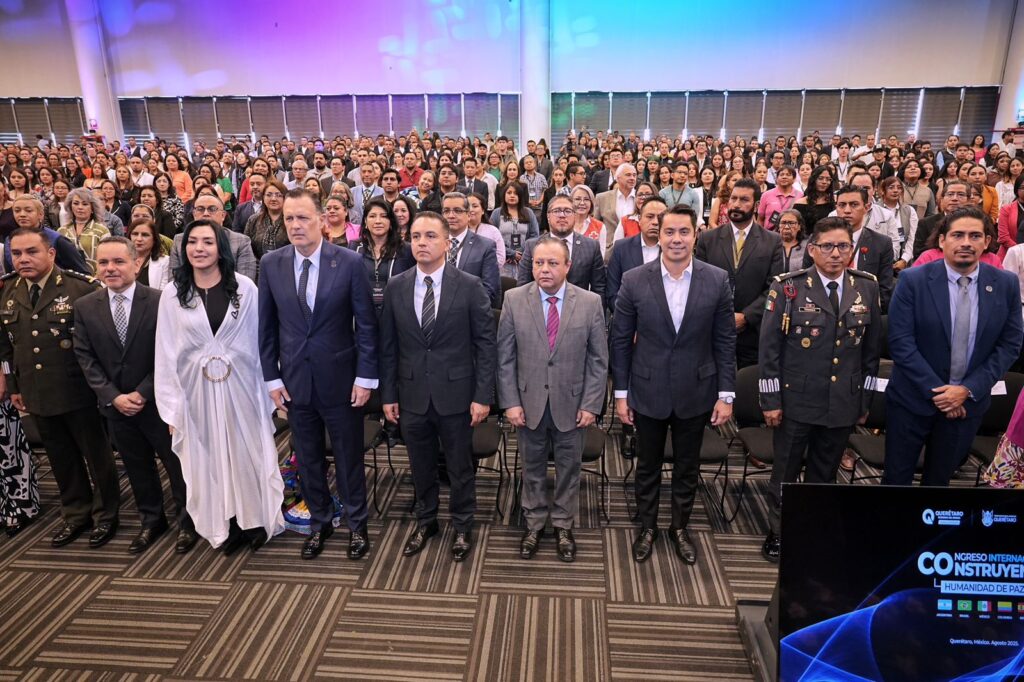 El presidente municipal de Querétaro, Felifer Macías, acompañó al gobernador Mauricio Kuri González en el Congreso Internacional Construyendo Humanidad de Paz, organizado por el Centro de Prevención Social del Delito y la Violencia del Estado de Querétaro, con el objetivo de impulsar políticas públicas para prevenir la violencia y la delincuencia, así como promover la solución pacífica de conflictos.