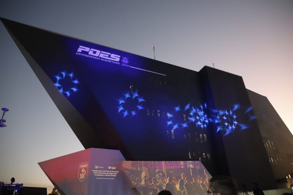 Ubicado sobre Paseo 5 de Febrero, este complejo fortalece las tácticas de seguridad del Estado y refuerza la coordinación con los municipios a través de nuevas herramientas tecnológicas como son 18 hangares de drones, conexión a C2, C4 y C5, sistema de video analítico para 750 puntos y 3 mil cámaras de videovigilancia.