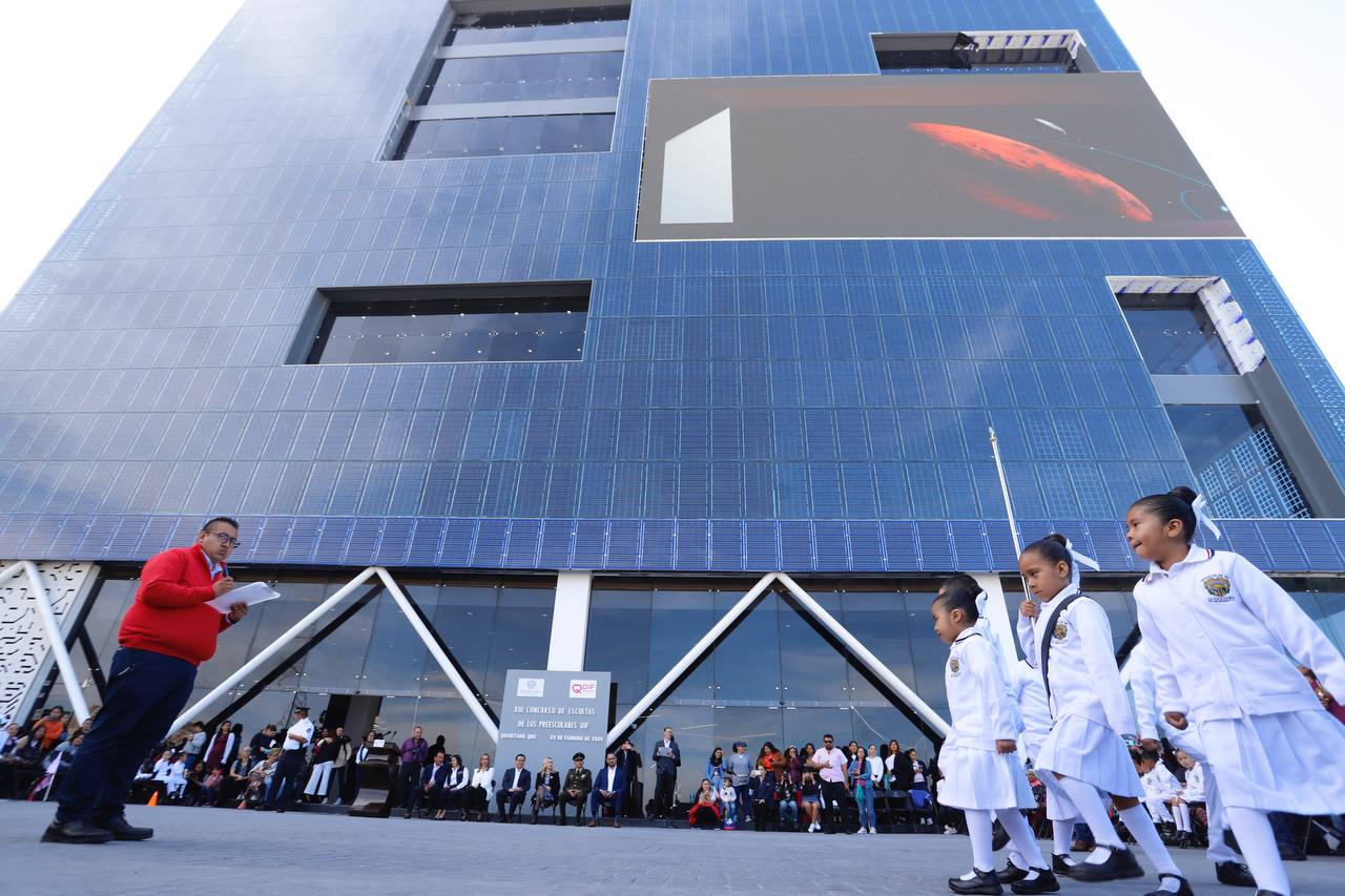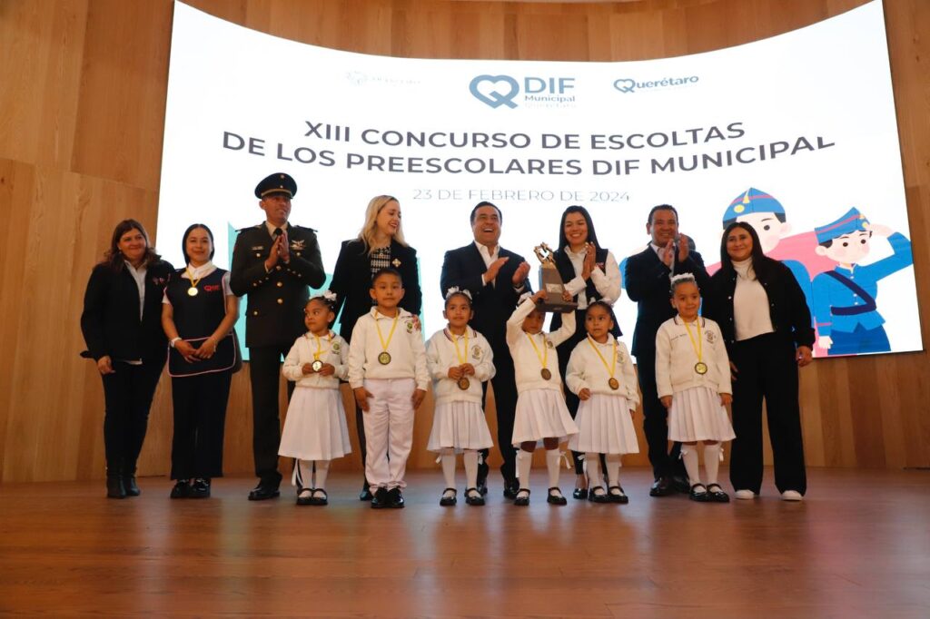 El Presidente Municipal de Querétaro, Luis Nava, acompañó a su esposa y Presidenta del Patronato del Sistema Municipal DIF, Arahí Domínguez, al Centro de Innovación y Tecnología Creativa BLOQUE, donde se llevó a cabo el décimo tercer concurso de Escoltas Preescolares del Sistema Municipal DIF, en el que las y los pequeñines mostraron su coordinación, pero sobre todo el respeto a los valores que representa la bandera nacional.