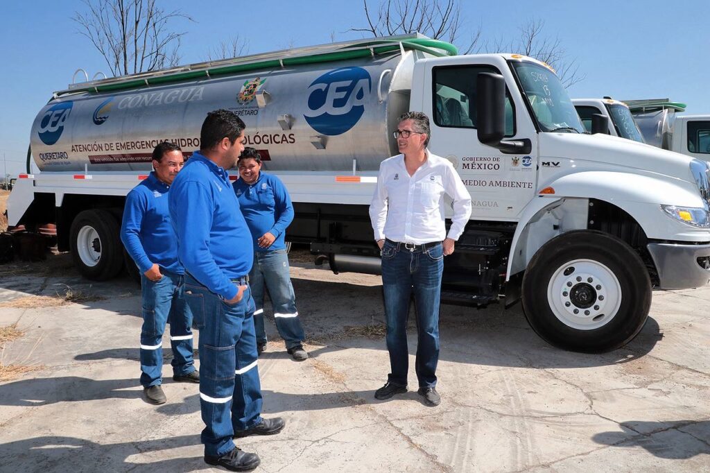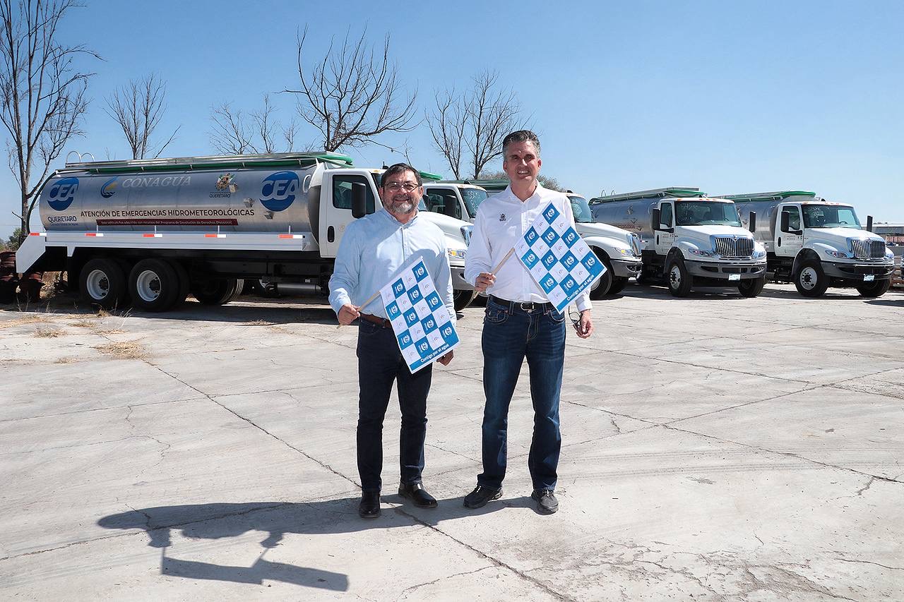 El vocal ejecutivo de la Comisión Estatal de Aguas de Querétaro (CEA), Luis Alberto Vega Ricoy, y el director local de la Comisión Nacional del Agua (Conagua), Raúl José Medina Díaz, realizaron la entrega de 10 autotanques cisterna con capacidad de 20 mil litros, que servirán para ampliar la capacidad para dar servicio en el territorio estatal.