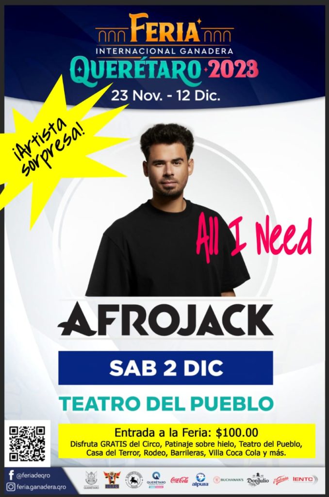 Afrojack, la estrella de la música electrónica más escuchada de nuestra generación, ¡es el artista sorpresa de la Feria Internacional Ganadera de Querétaro 2023!.