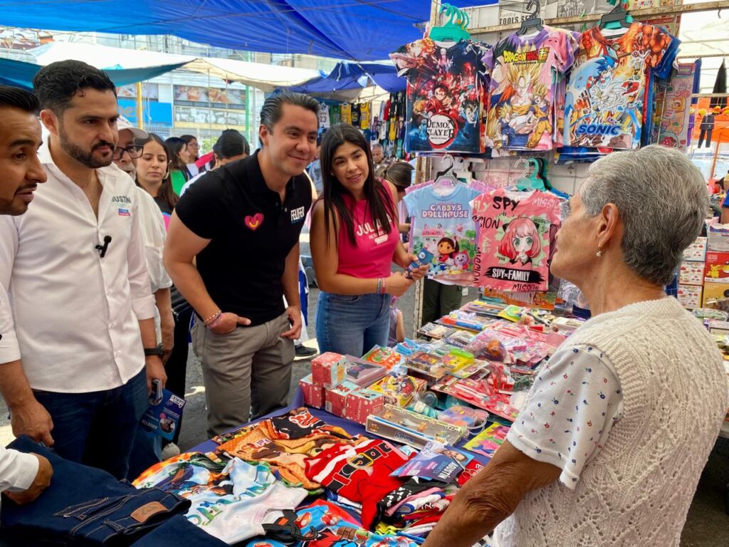 y Felifer Macías, candidato del PAN a la presidencia municipal de Querétaro, recorrieron el tradicional tianguis de La Cruz, que temporalmente se instala en Plaza de las Américas.