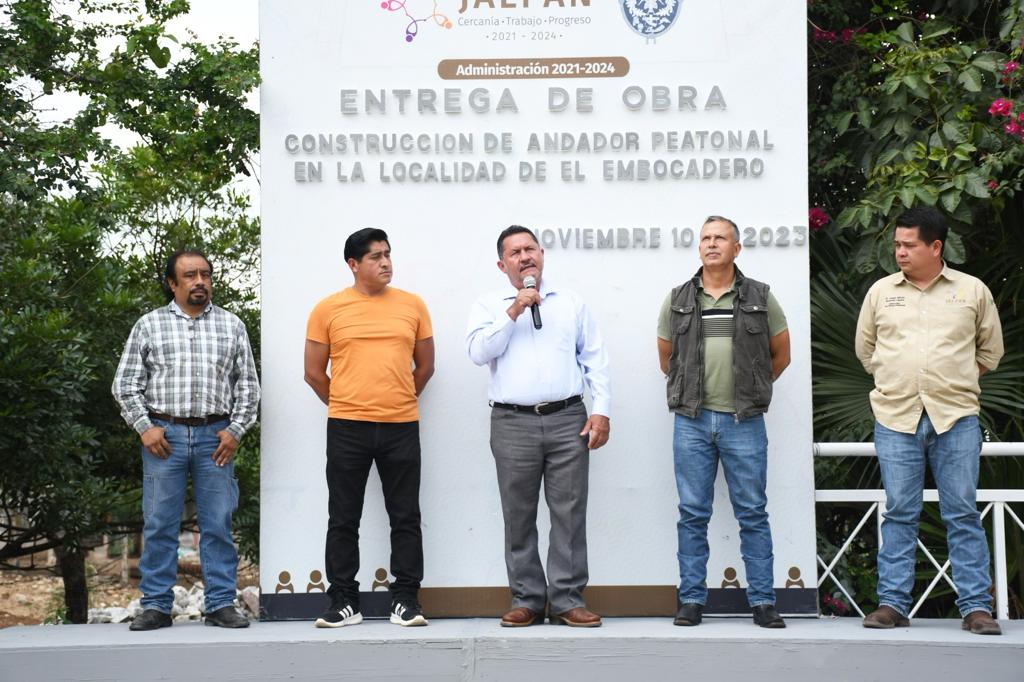 el Presidente Municipal Payín Muñoz habló de la importancia que representa la construcción de este andador dentro del tema de la seguridad para la gente que hace uso del mismo; dado que anteriormente caminaba por la orilla de la carretera, lo cual representaba un grande peligro para todos por la circulación vehicular a la par.