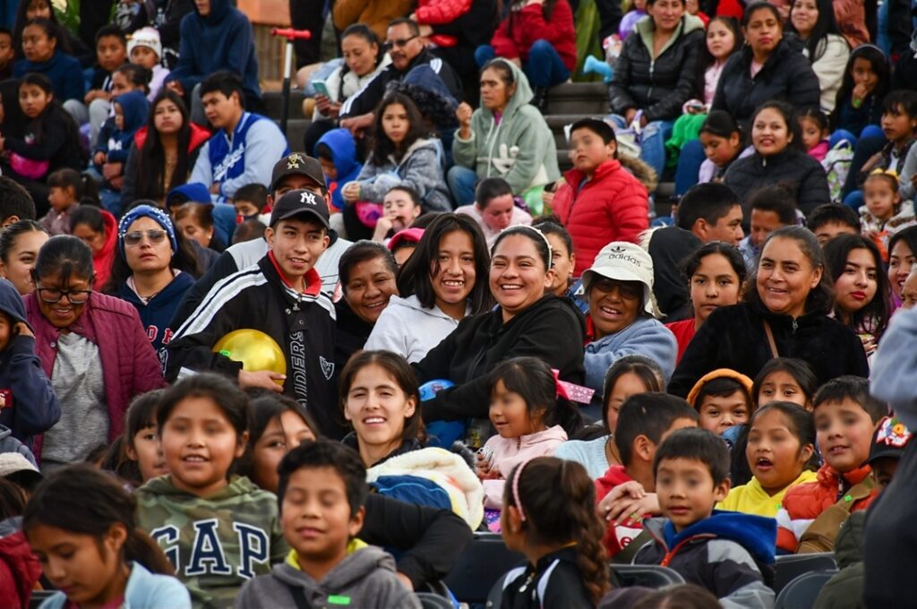 “Nos sentimos muy felices de visitarlas a todas y todos ustedes junto con los reyes magos: Melchor, Gaspar y Baltazar. Sabemos que se han portado muy bien, que están echándole muchas ganas a la escuela, por eso estamos aquí para traerles estos regalos y sorpresas, para que sigan siendo muy felices”.