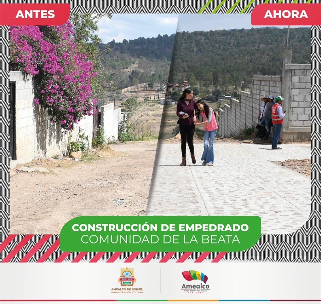 La administración de Amealco de Bonfil que encabeza el Presidente René Mejía Montoya, está comprometida con seguir llevando progreso y felicidad a cada una de las comunidades de Amealco, una de las formas de consolidarlo, es realizando la construcción de obras prioritarias que mejoran la calidad de vida de las y los Amealcenses, es así que el Alcalde encabezó la entrega del empedrado de Camino principal en la localidad de El Salvador y el empedrado en calle Josefa Ortiz de Domínguez en La Beata, contando con una inversión de alrededor de un millón y medio de pesos, lo que beneficiará a habitantes de ambas comunidades y a todos quienes transiten por ellas.