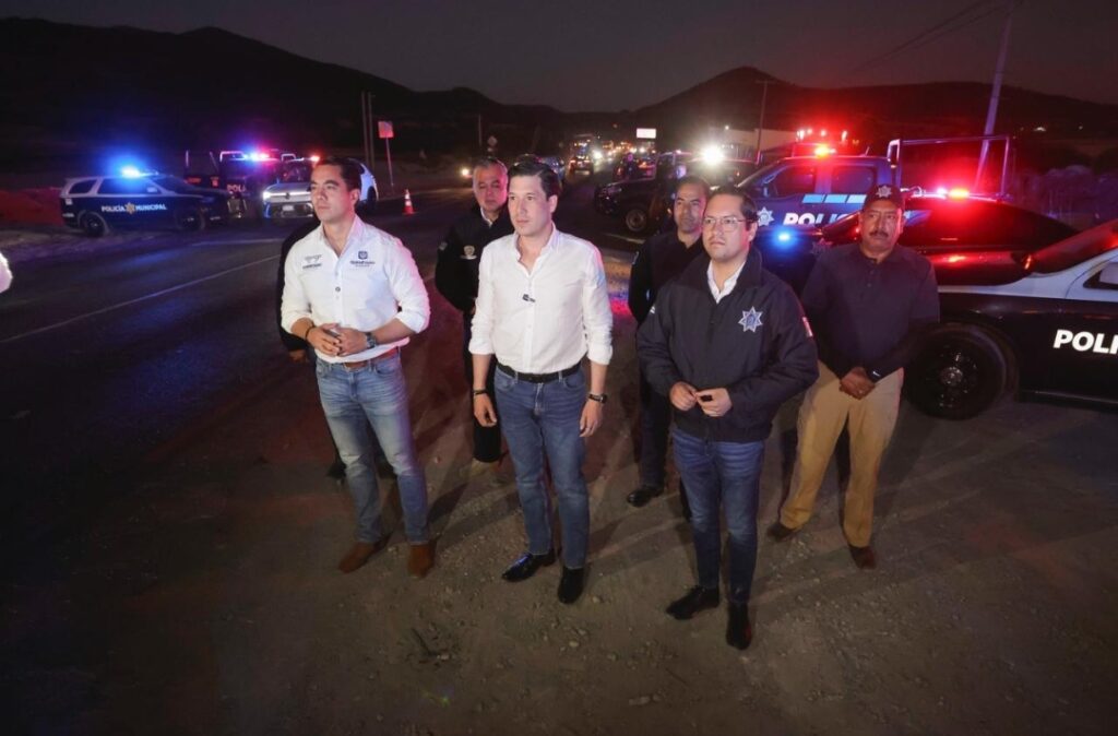 “Nos reunimos hoy los alcaldes de la zona metropolitana para supervisar de primera mano la coordinación y el despliegue de las policías municipales en los retenes de prevención que acordamos como parte de la estrategia de seguridad de la región conurbada.”
