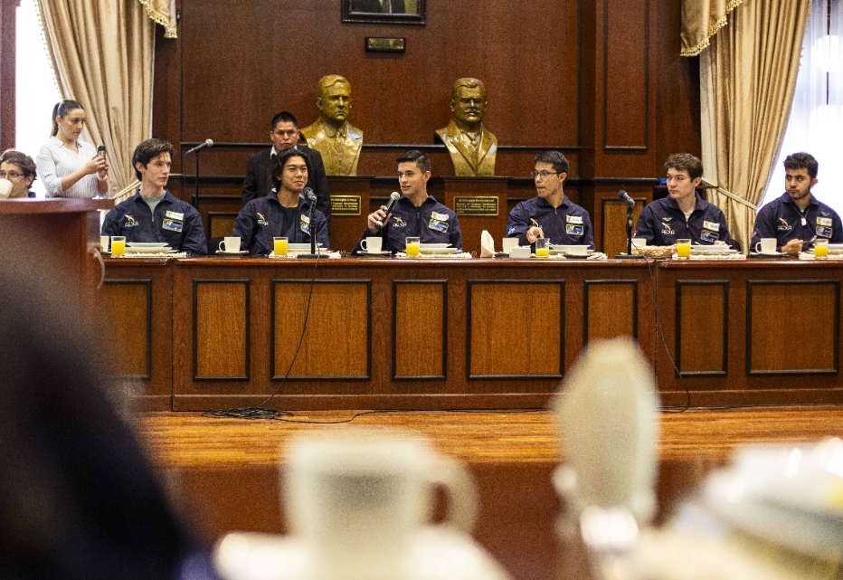 Al hablar en representación del grupo que participó en el Air & Space Program 2024, Ricardo Feregrino Ochoa manifestó que la experiencia es muy inspiradora, tiene la virtud de inspirar a otros jóvenes y soñar a lo grande.