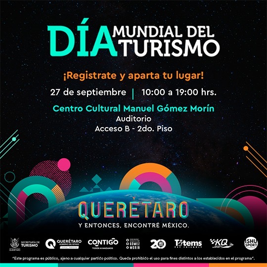 La Secretaría de Turismo del estado de Querétaro (SECTUR), a través de su titular, Adriana Vega Vázquez Mellado, anunció diversas actividades académicas y recreativas, para conmemorar el Día Mundial de Turismo, que se celebra el próximo 27 de septiembre.