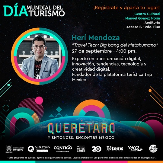 Agregó que se tendrá una serie de conferencias magistrales con temas relacionados al turismo, tales como la ponencia “Travel Tech: Big Bang del Metahumano”, impartida por Herí Mendoza, experto en transformación digital, innovación, tendencias, tecnología y creatividad digital, además de ser fundado de la plataforma “Trip”.