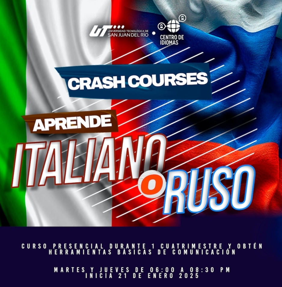 La Universidad Tecnológica de San Juan del Río convoca a estudiantes, docentes, profesionistas y sociedad en general a inscribirse al Centro de Idiomas (CIUT), que a partir del 18 de enero ofrecerá los días martes y jueves de 18:00 a 20:30 horas, cursos de italiano y ruso para adultos a partir de los 17 años de edad. Así como el curso sabatino de Lenguaje Mexicano de Señas dirigido a la sociedad en general.