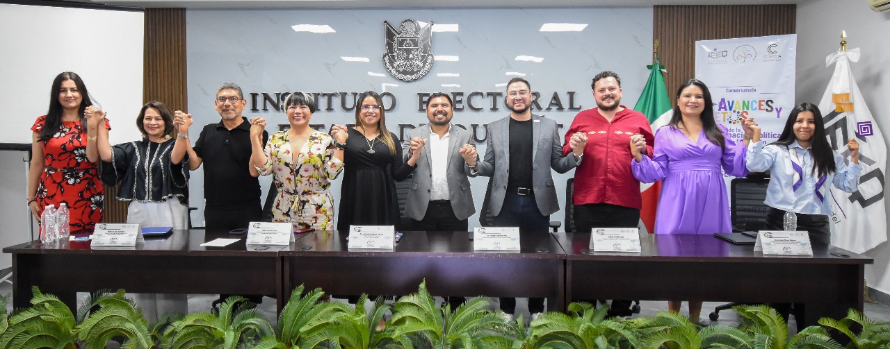 El Instituto Electoral del Estado de Querétaro (IEEQ), el Frente Queretano por el Derecho a la No Discriminación y el Estado Laico, así como Cívica, Confederación Queretana de Organizaciones Sociales llevaron a cabo el conversatorio “Avances y Retos de la Participación Política de la Población LGBTTTIQA+”.