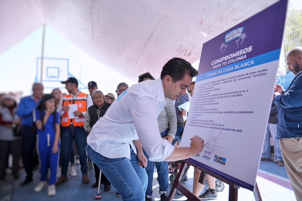 Al final del recorrido Felifer Macías firmó un compromiso con los habitantes de la colonia Lomas de Casa Blanca para realizar las siguientes acciones: desmalezado de pasto, poda baja y mantenimiento de áreas verdes; reparación de alumbrado y reportes de luminarias fundidas, así como nuevos puntos de luz; retiro de escombro, tiliches y borrado de grafiti; rehabilitacion del camellón y las canchas sobre la Avenida 4.