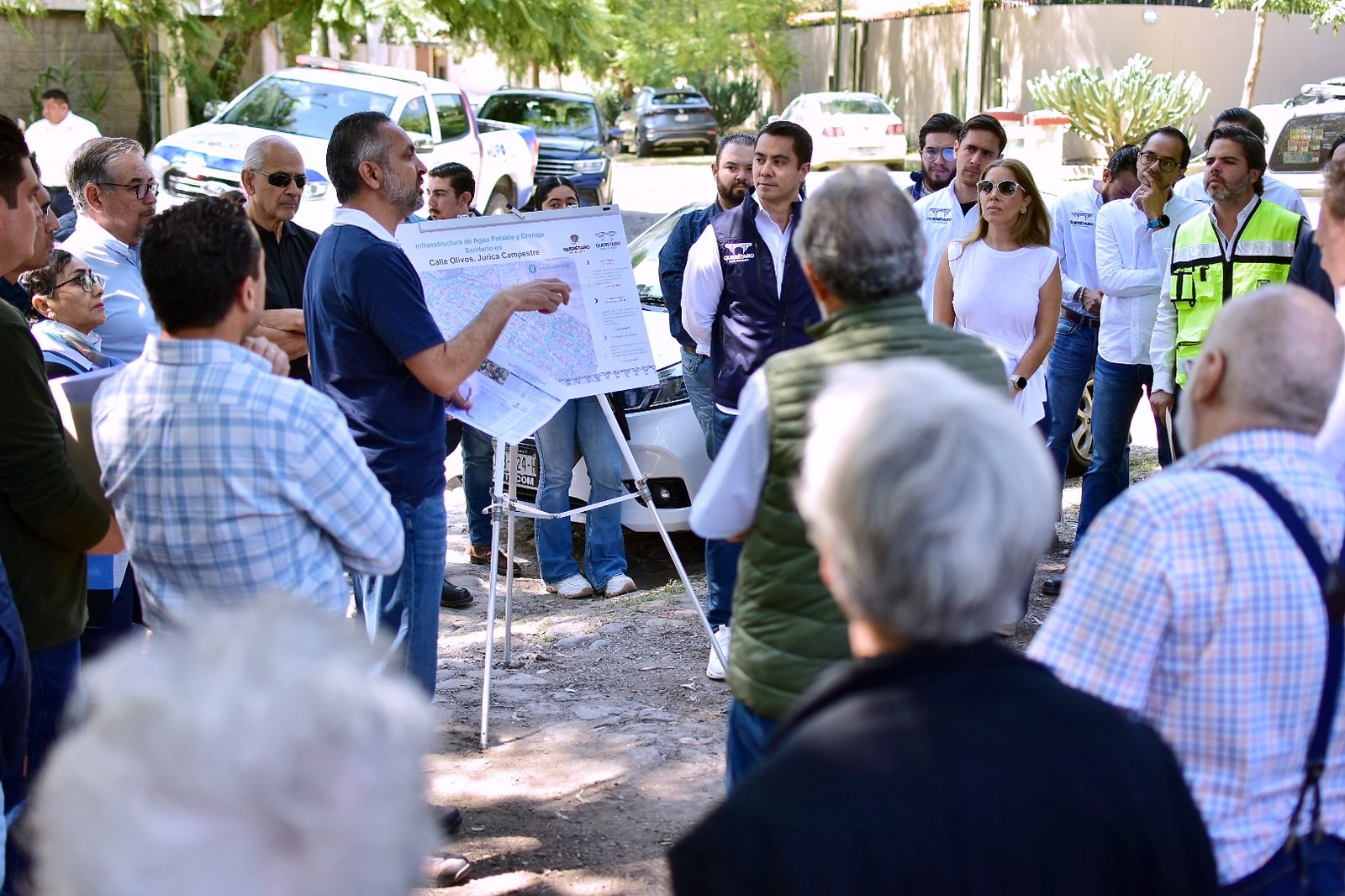 El presidente municipal de Querétaro, Felifer Macías, se reunió con vecinos de la calle Olivos en Jurica Campestre para anunciar una inversión superior a los 32 millones de pesos destinada al reemplazo de la red de agua potable y la sustitución de la tubería de drenaje sanitario. La obra, que iniciará en diciembre, también contempla la rehabilitación de banquetas con empedrado y adocreto a lo largo de 1.1 kilómetros.