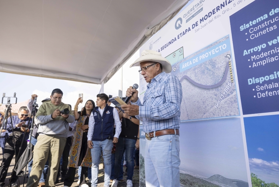 “Nuestra idiosincrasia en San Juan del Río viene del campo, del campo sanjuanense. Quiero decirte también que esta carretera es justa, la verdad, porque vale la pena reconocerles de esa manera. Además de que es el camino diario de niñas y niños de nuestras colonias, de la gran mancha urbana”, apuntó.