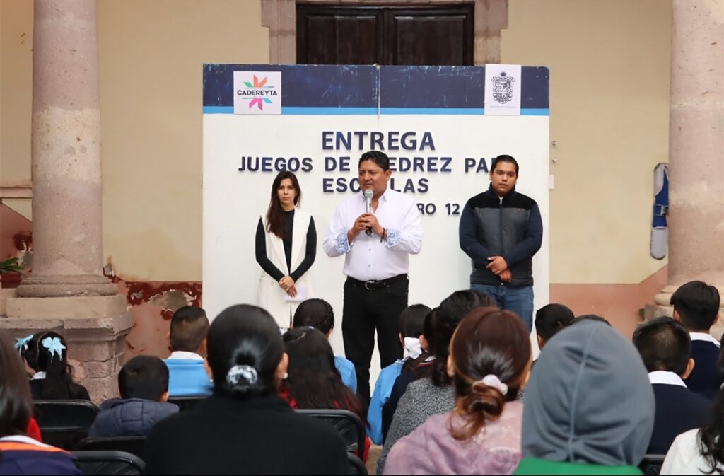 Teniendo como sede el Centro Cultural “Constantino Llaca Nieto”, este día el presidente municipal de Cadereyta encabezó la entrega de 180 tableros de ajedrez a diversas escuelas, encuentro donde anunció que en febrero próximo Raúl Hernández, Presidente de la Federación Nacional de Ajedrez de México pondrá en marcha en Cadereyta el primer “Centro de Alto Rendimiento de Ajedrez” considerado el primero en su tipo en la república.