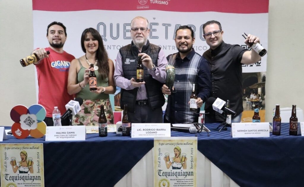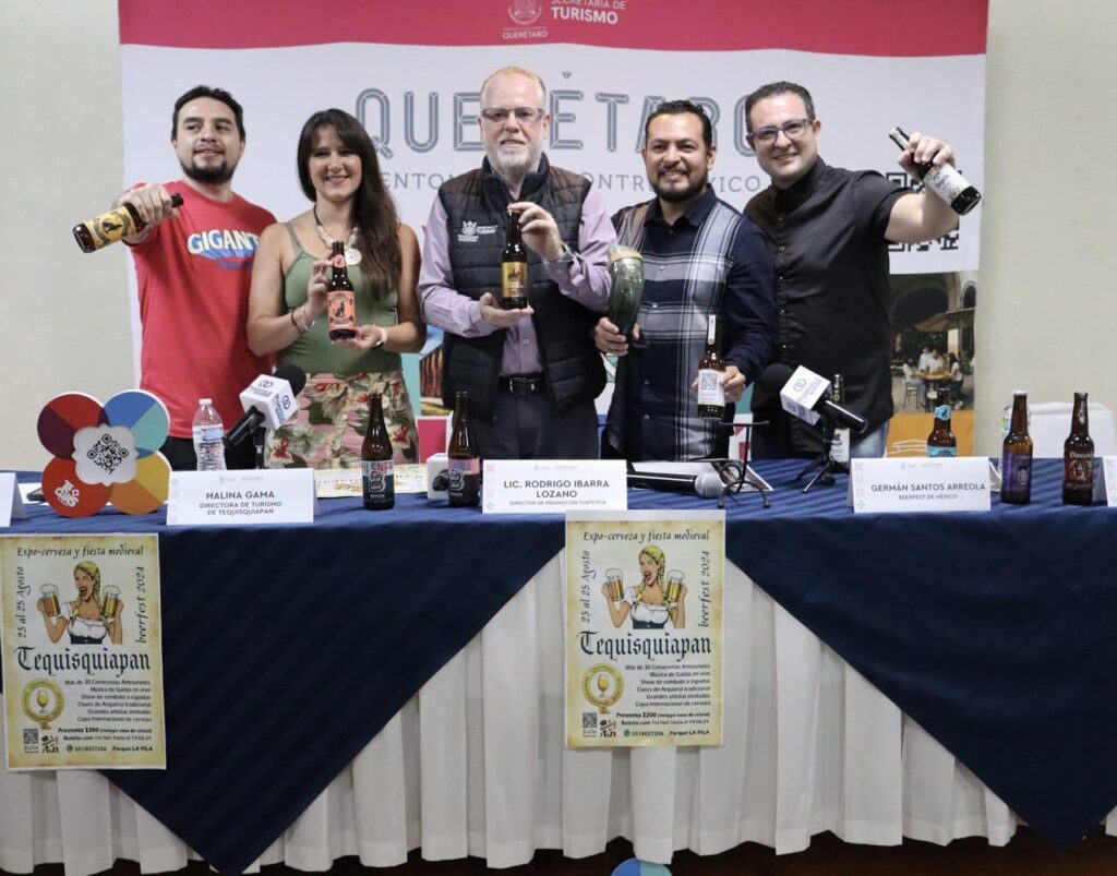 Con el objetivo de promover a las cervezas artesanales y el vino de la región, el director de Promoción Turística de la Secretaría de Turismo del estado (SECTUR), Rodrigo Ibarra Lozano; en compañía de la directora de Turismo del Pueblo Mágico de Tequisquiapan, Halina Gama Arriaga, anunció la realización de la tercera edición del “Beerfest 2024 y Querétaro International Bee Cup”, del 23 al 25 de agosto en el Parque La Pila, de esta demarcación.