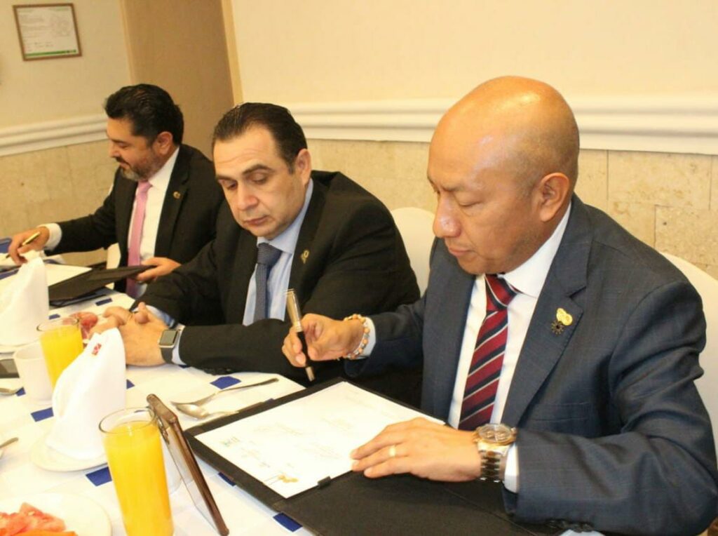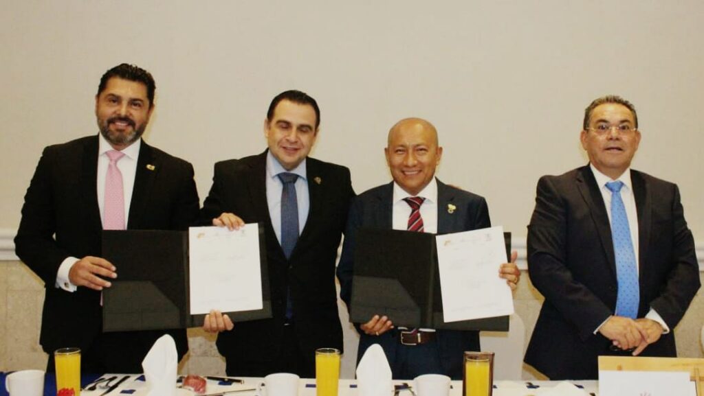 Para ello, el CCPQ firmó convenio con el CAEQ a través de sus Presidentes, Carlos Bautista y Aldo Alfaro, teniendo como testigos de honor al Presidente de la FECAPEQ, Ofir Aragón Nieves y al Presidente de la Comisión de Seguridad Social del Colegio, Sergio Ledesma.