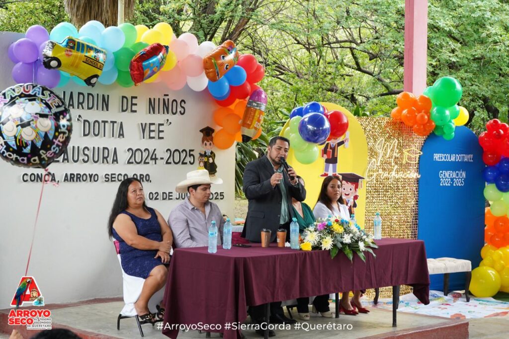 La mañana de este martes, el Presidente Municipal de Arroyo Seco, Fernando Sánchez Gil, acompañó como padrino de generación a las niñas y niños del Jardín de Niños “Dotta Yee”, en su emotiva ceremonia de graduación.