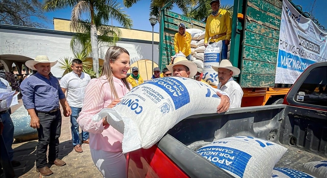 Como parte de un plan emergente para apoyar a los agricultores y garantizar el abastecimiento de alimentos en la región, la presidente municipal Yuni Benítez y el secretario técnico de la SEDEA José González Ruiz, realizaron la entrega de aproximadamente 70 toneladas de maíz para consumo humano a cerca 300 productores.