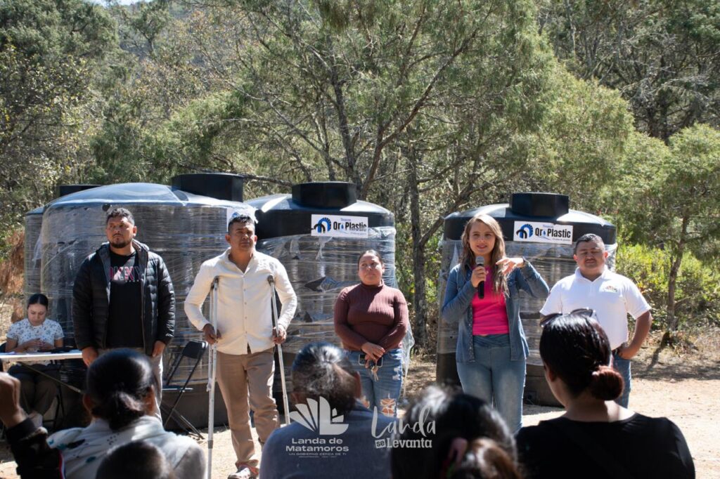 En un esfuerzo por fortalecer la economía familiar y mejorar las condiciones de vivienda, la Presidenta Municipal de Landa de Matamoros, Yuni Benítez, encabezó la entrega de tinacos y calentadores solares en la comunidad de Pinalito de la Cruz, beneficiando a familias de diversas localidades del municipio.