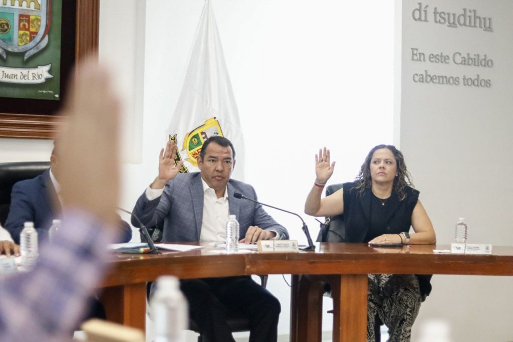 El punto de acuerdo fue presentado por el presidente municipal de San Juan del Río, Roberto Cabrera Valencia, en acompañamiento por el secretario de Desarrollo Sustentable, Óscar Alcántara Peña, y el director de Asentamientos Humanos Irregulares, Gregorio Mondragón Mendoza, e incluye lobs beneficios para el pago de impuesto predial y de traslado de dominio.