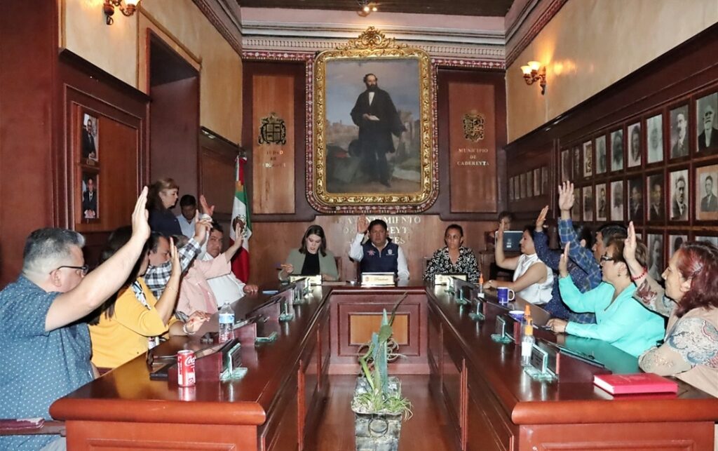 Con la asistencia de las y los 12 regidores del H. Ayuntamiento, la Secretaria del Ayuntamiento, Montserrat Olivet Ledesma, dio lectura a la orden del día de esta Sesión Extraordinaria de Cabildo en la que Miguel Martínez Peñaloza solicitó la separación temporal a su cargo como Presidente Municipal de Cadereyta, y en un segundo punto se sometió a consideración del Cuerpo Edilicio la propuesta para que la Regidora Síndica Ma. Celina Alegría Hernández ocupara el cargo de Presidente Municipal Interino, ambos puntos fueron aprobados por mayoría.
