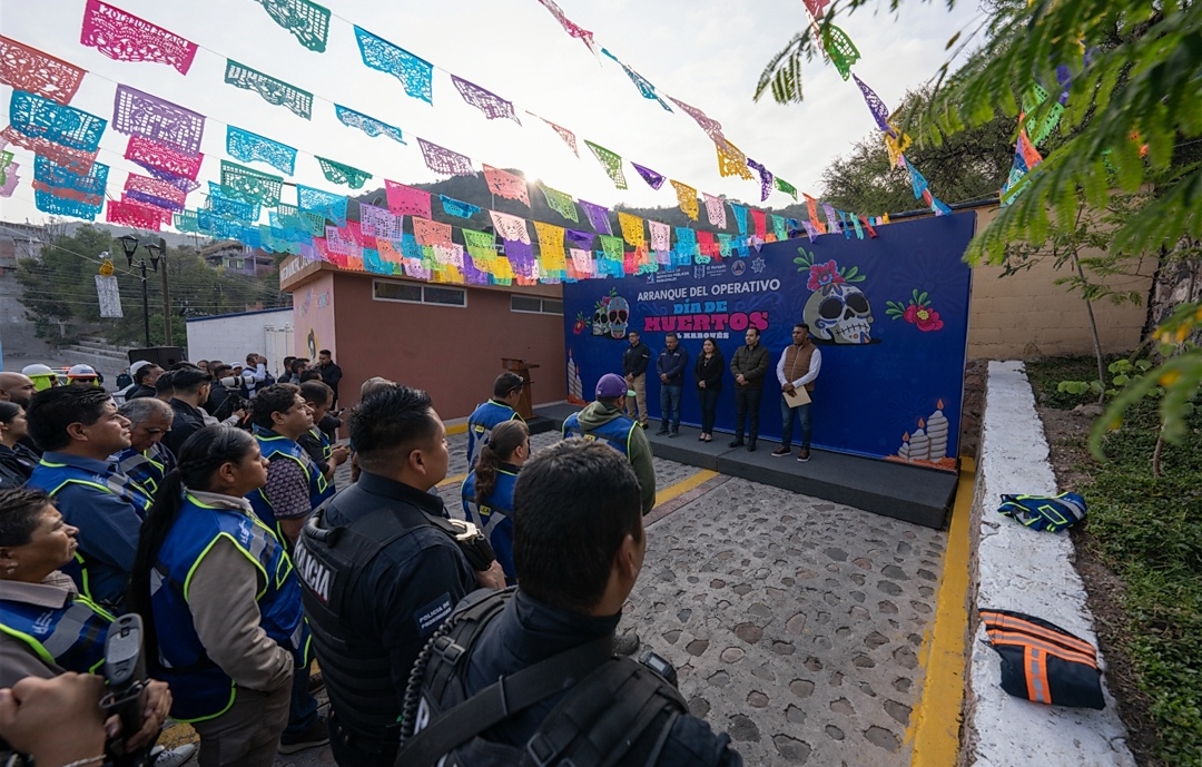 “Este año la celebración se enriquece no solo con el calor de las ofrendas y el color de nuestras tradiciones, sino también con la presencia y el respaldo de nuestros equipos de Servicios Públicos, Seguridad Pública y Protección Civil; su participación sin duda será fundamental para preservar el orden y la seguridad de todos los asistentes, tanto en los operativos establecidos en los puntos de mayor afluencia como en los panteones, donde en un ambiente de respeto, honramos a nuestros seres queridos. Nuestro compromiso es asegurar que cada familia y cada visitante viva esta tradición en paz y en un entorno seguro”.