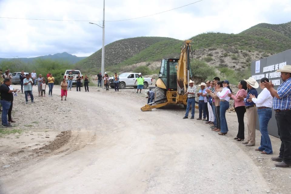 La Presidenta Municipal Ana Karen Jiménez acompañada de Regidores, Directores de la Administración, Delegado Municipal y beneficiarios, arrancan la obra: