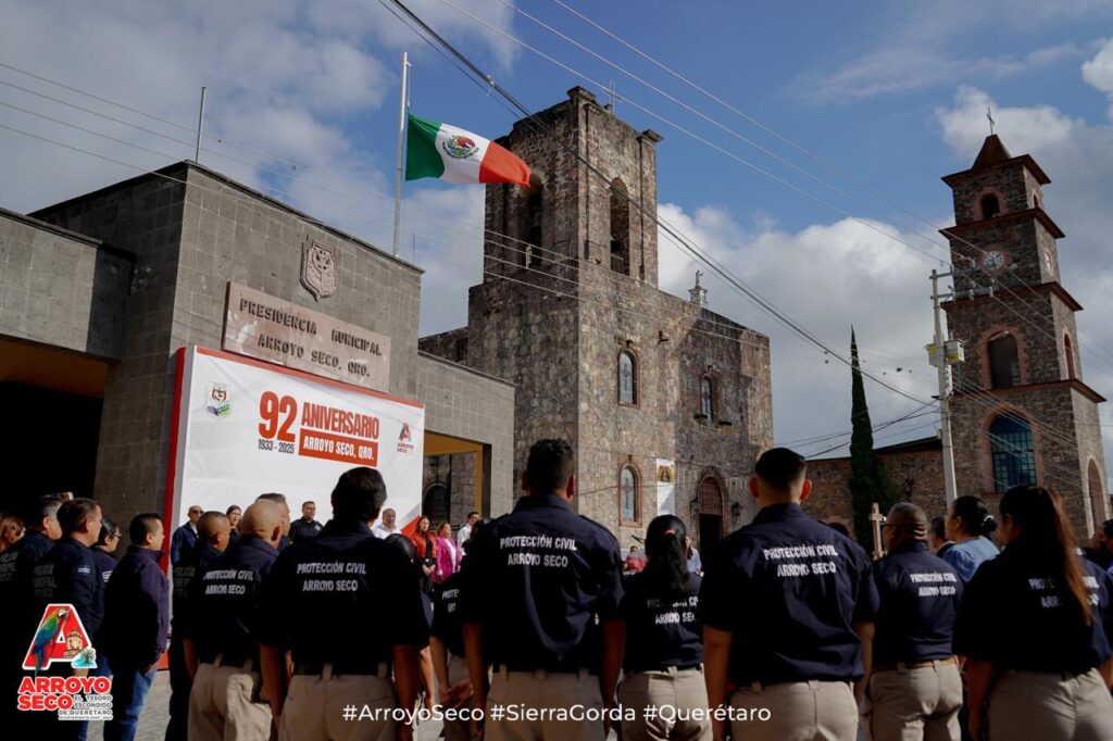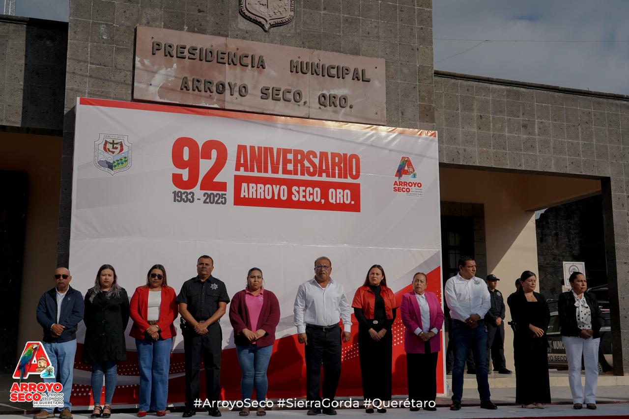 La administración de Arroyo Seco encabezada por el Presidente Municipal, Fernando Sánchez Gil, conmemoró un aniversario más de su creación como municipio con una ceremonia cívica encabezada por el Secretario del Ayuntamiento, J. Carmen Pérez.