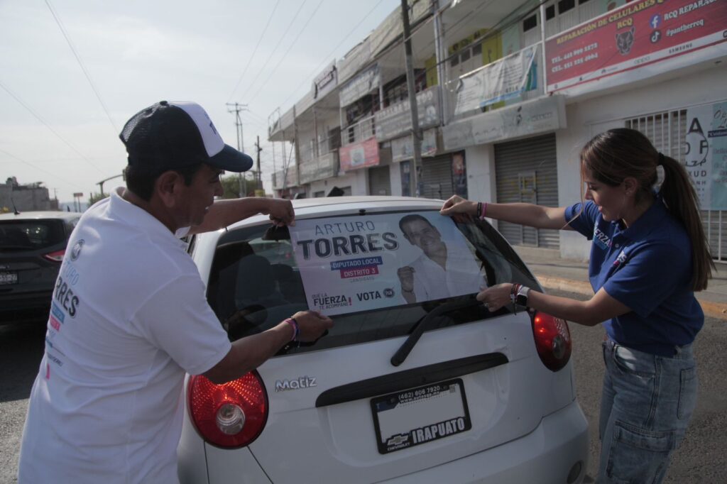 El candidato de la Alianza Fuerza y Corazón por México (PAN,PRI,PRD), a la diputación local por el tercer distrito, Arturo Torres Gutiérrez, continúa recorriendo las colonias entregando sus propuestas en cruceros y poniendo microperforados, visitando sus calles y casa por casa; además de tener reuniones vecinales, a fin de presentar sus propuestas y presentarse como la mejor opción para que voten por él el próximo 2 de junio.