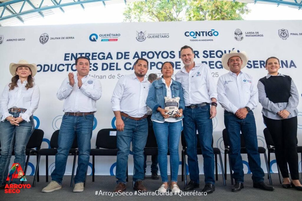 Ante esta situación, el Gobernador del Estado, Mauricio Kuri González, encabezó la entrega regional de más de 585 toneladas de maíz para consumo humano en la Sierra Gorda, beneficiando a 2,794 productores que han enfrentado pérdidas significativas debido a la falta de lluvias durante los ciclos productivos 2022, 2023 y 2024.