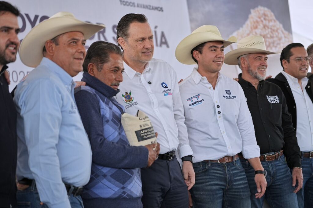 - «Hoy los apoyos que se van a entregar representan la lucha unida que tenemos que hacer contra el grave fenómeno de la sequía, la lucha unida que tenemos que hacer contra la desaparición de los programas de apoyo al campo que se venían dando antes y ya no en la federación. Desde esta reunión y desde este equipo de trabajo tenemos que avanzar a favor de nuestras comunidades», señaló el alcalde.