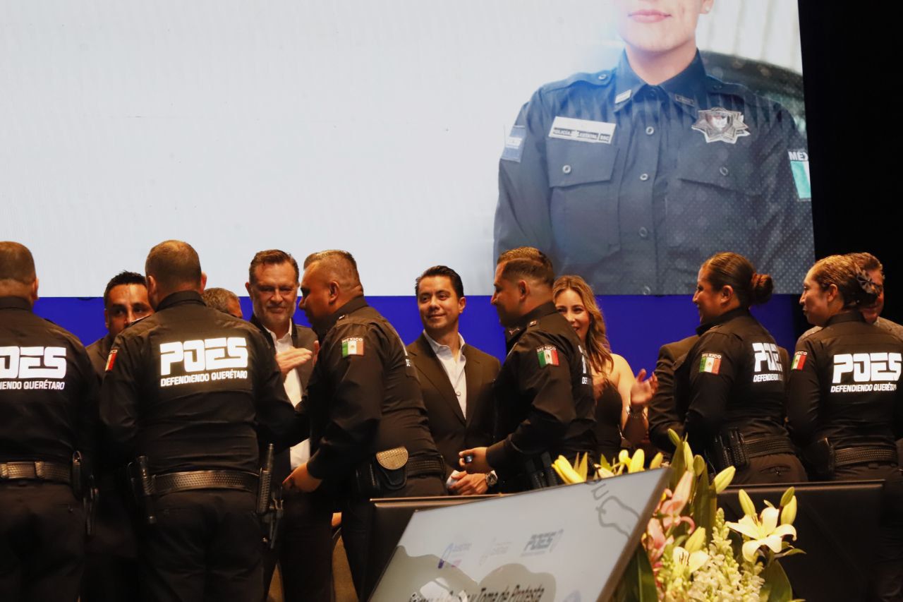El presidente municipal de Querétaro, Felifer Macías, acompañó al gobernador del Estado, Mauricio Kuri González, en la entrega de 69 ascensos por oposición y en la toma de protesta de 47 nuevos policías que se integran a la Policía Estatal, con lo que se fortalece el estado de derecho y el orden, además se visualiza una sólida estrategia de profesionalización policial para defender a Querétaro.