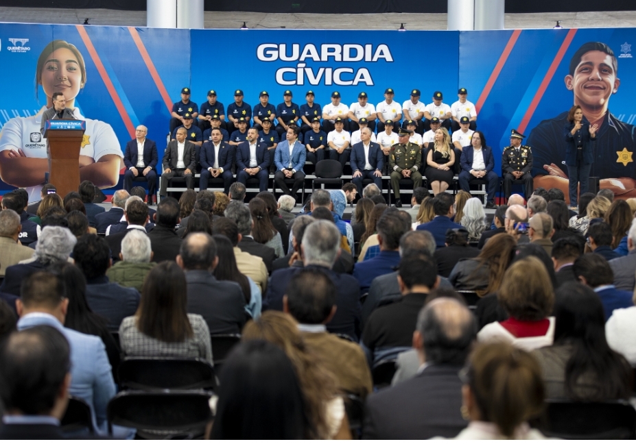 El titular del Poder Ejecutivo estatal, Mauricio Kuri González, asistió como testigo de honor a la presentación de la nueva Guardia Cívica de la Secretaría de Seguridad Pública Municipal de Querétaro (SSPMQ), agrupación que evolucionó el concepto de policía de proximidad, con un enfoque especializado en civilidad y orientada al respeto de los derechos humanos.