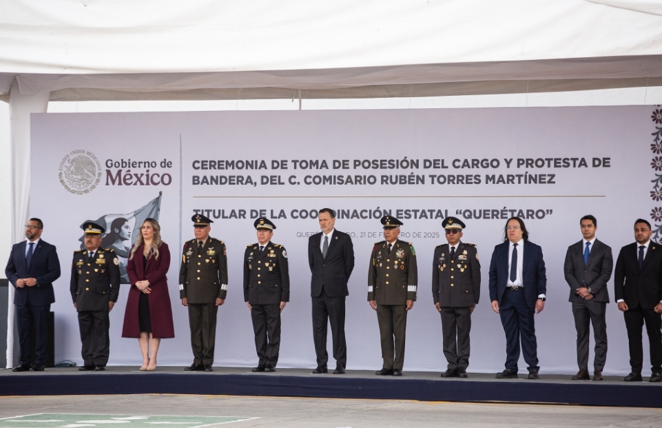 El titular del Poder Ejecutivo estatal, Mauricio Kuri González, atestiguó la toma de posesión del cargo y protesta de bandera del comisario, Rubén Torres Martínez, como coordinador de la Guardia Nacional en Querétaro. En el acto cívico se dio lectura al currículum del nuevo titular de la corporación, se llevaron a cabo honores al Lábaro Patrio y al mando por la escolta y banda de guerra de la institución; y se entonó el Himno Nacional Mexicano.
